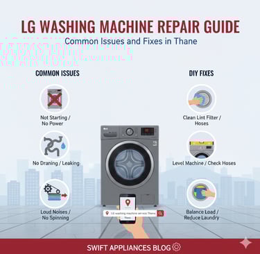 Facing LG washing machine problems in Thane? This comprehensive guide covers common issues like not draining, error codes, and leaks, with DIY fixes and pro tips. Contact Swift Appliances for reliable LG washing machine repair in Thane and Mumbai today.